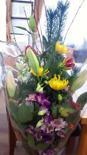 ☆15:35 みなさまこんにちわ(^-^) 今日は、施設長が玄関にお正月のお花を生けてくださいます(^o^)vこの綺麗な切り花が、どのように生けられるか、好ご期待! 【お知らせ】 12月29日〜1月3日まて、事務室はお休みとなります。ご了承下さいm(__)m職員は、早番遅…
