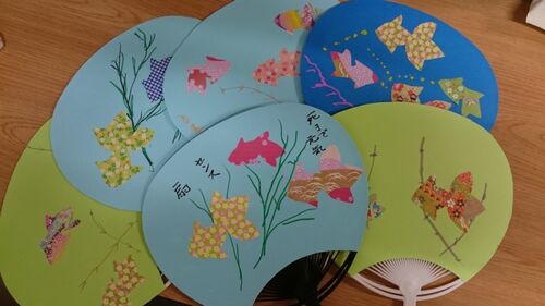 ☆15:30 みなさま こんにちは 今日も朝から、とっても暑いですね(+o+) 外のメダカさん達も、暑さで日陰に入って 涼んでいますよ〜先日ボランティアの方に来ていただき 「手作り団扇」を作りました!団扇の骨組みに好きな色の模造紙を貼り、 金魚の形に切って…