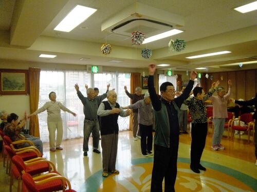 ☆18:45 みなさま こんばんは 今日もいいお天気でしたが、朝夕とても寒く もうすっかり秋ですね先日の19日に、毎年恒例の「白寿リンピック・レクリエーション」を 開催しました!今年も抽選で赤組と白組に分かれて、競技しました準備運動をして、体をほぐし…